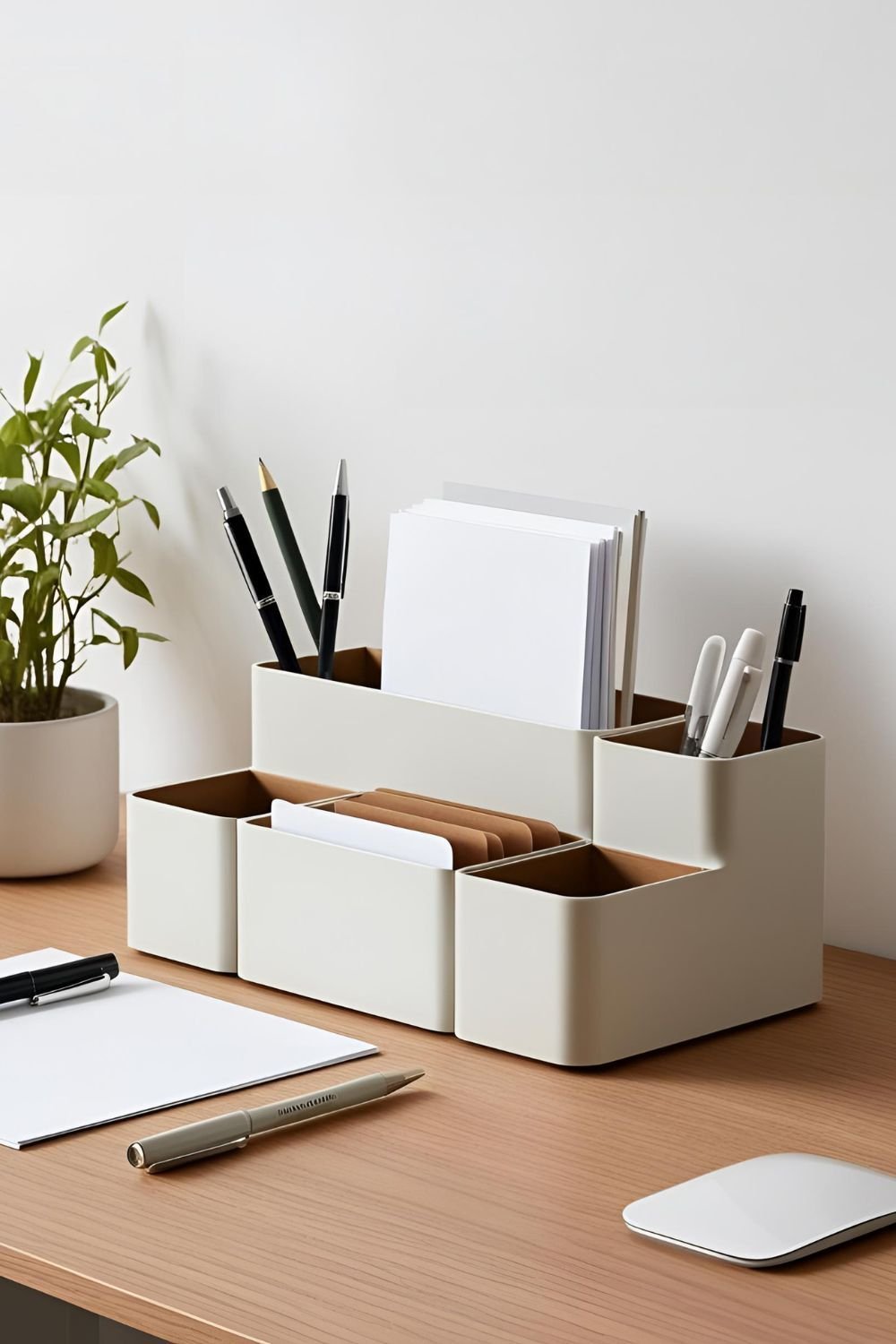 Mantén tu espacio de trabajo ordenado con este organizador de escritorio modular y ajustable, ideal para bolígrafos, notas y otros accesorios.